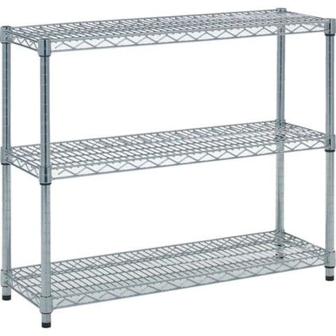 ・間口(mm):909・奥行(mm):307・高さ(mm):745・有効間口(mm):829・パイプ径(mm):25.4・棚段数(段):3・均等積載量(kg/段):250・最大積載量(kg/台):1000・棚板調整ピッチ(mm):25・組立目安:1人30分