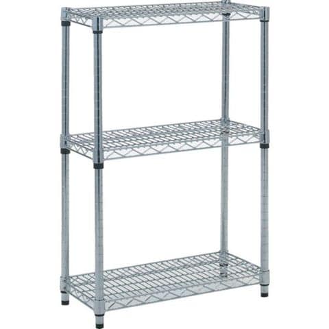 ・間口(mm):609・奥行(mm):307・高さ(mm):923・有効間口(mm):529・パイプ径(mm):25.4・棚段数(段):3・均等積載量(kg/段):250・最大積載量(kg/台):1000・棚板調整ピッチ(mm):25・組立目安:1人30分