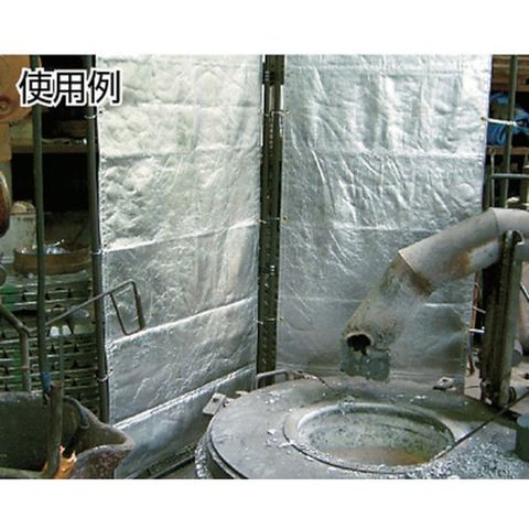 ・熱反射性、耐熱性に優れ輻射熱を反射します。・6ミクロンのポリエステルフィルムの両面にアルミニウム蒸着層をつけたフィルムと耐炎繊維朱子織物(高密度品)とをラミネートした複合品です。・ノンアスベスト・ノンセラミックの安全な商品で皮膚刺激を誘発する繊維も含みません。