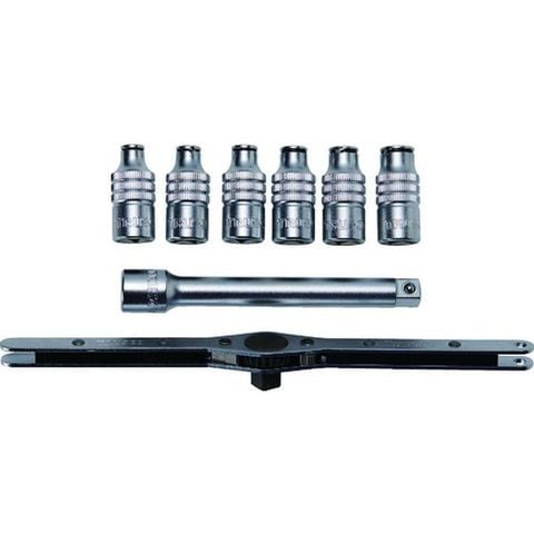 ・汎用のソケットレンチ用のハンドルで駆動することのできるタップホルダソケットのセットです。