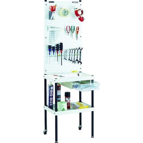 ・多目的に使えるパンチングパネルラックです。・パネリーナ用フックやコバンザメP型用フックも使用可能です。・壁際での工具管理に最適で、工具類の管理状況が一目で把握できます。・テーブル上にて簡単な作業が行えます。・引出し付なので書類など管理できます。