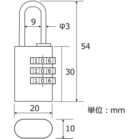 ・色:レッド・付属鍵本数(本):0・キー番号:番号可変式・幅(mm):20・厚さ(mm):10・全長(mm):54・ツル径(mm):3・ツル径(mm):3・C(mm):24・D(mm):9