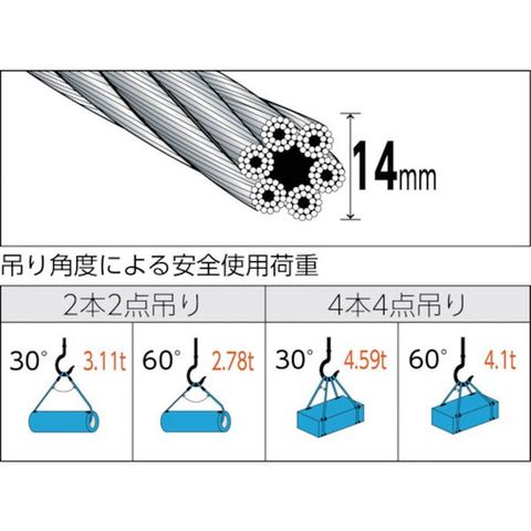 ・安全使用荷重2本垂直吊り(t):3.28・全長(m):2.5・スリング径(mm):14・タイプ:A