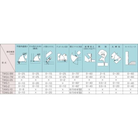 ・角度測定器差(°):±0.7・すき間測定器差:±0.4mm・すみ肉・余盛測定器差:±0.4mm