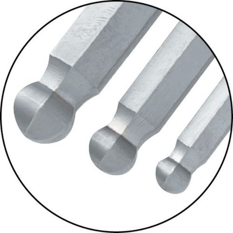 ・六角棒の先端の平面かどは各辺均等に面取りを行っています。・普及品と比べ、高トルク・耐久力・耐摩耗性が抜群に優れています。・六角穴への差し込みが一層容易となり、しかも面取り角度は六角穴底の「かどすみ」に密着するよう設計しています。・マットクロムメッキです。・硬度はHRC52~56です。