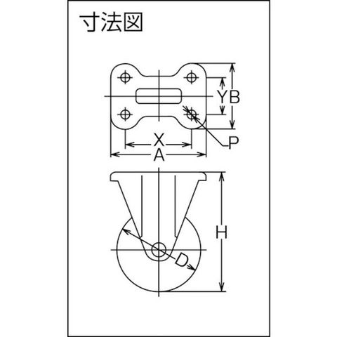 ・車輪径D(mm):100・タイプ:固定式・許容荷重(daN):100・許容荷重(kgf):102.0・車輪幅(mm):32・取付高H(mm):144・取付座A(mm):115・取付座B(mm):80・取付ピッチX(mm):80・取付ピッチY(mm):45・取付穴径P(mm):11・許容荷重(N):1000