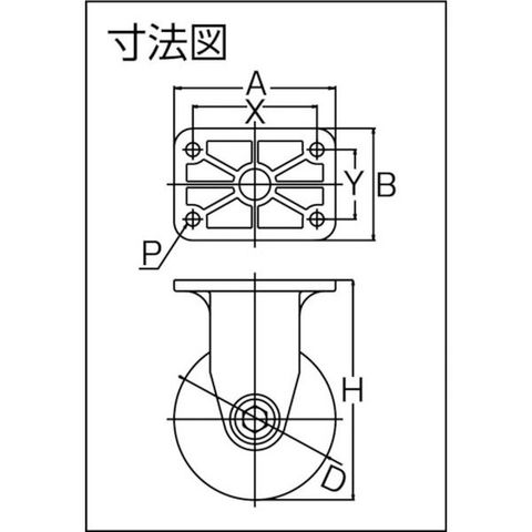 ・車輪径D(mm):130・タイプ:固定式・許容荷重(daN):130・許容荷重(kgf):132.6・車輪幅(mm):34・取付高H(mm):177・取付座A(mm):130・取付座B(mm):90・取付ピッチX(mm):100・取付ピッチY(mm):56・取付穴径P(mm):11・許容荷重(N):1300・車輪材質:ナイロンホイールゴム