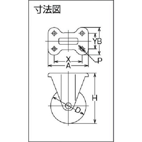 ・車輪径D(mm):150・タイプ:固定式・許容荷重(daN):200・許容荷重(kgf):204.0・車輪幅(mm):40・取付高H(mm):198・取付座A(mm):137・取付座B(mm):93・取付ピッチX(mm):100・取付ピッチY(mm):56・取付穴径P(mm):11・許容荷重(N):2000