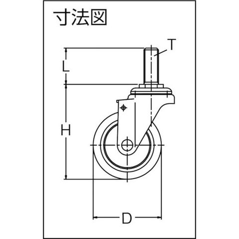 ・車輪径D(mm):75・タイプ:自在式・許容荷重(daN):60・許容荷重(kgf):61.2・車輪幅(mm):27・取付高H(mm):104・軸長L(mm):40・ねじT:M16・ねじピッチ(mm):2