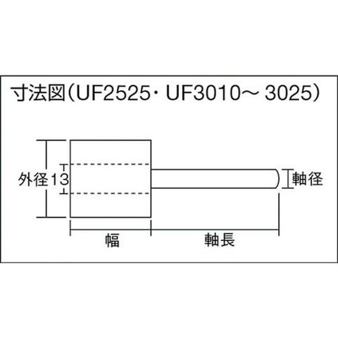 ・粒度(#):240・外径(mm):50・幅(mm):25・軸径(mm):6・軸長(mm):40・羽根枚数(枚):約135・最高使用回転数(rpm):20000