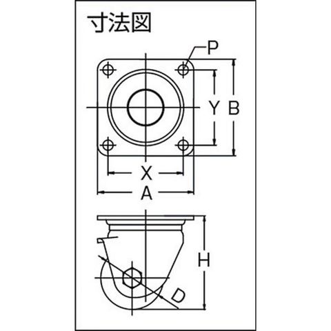 ・車輪径D(mm):65・タイプ:自在式・許容荷重(daN):500・許容荷重(kgf):510・車輪幅(mm):48・取付高H(mm):97・取付座A(mm):100・取付座B(mm):100・取付ピッチX(mm):78・取付ピッチY(mm):78・取付穴径P(mm):10.5・許容荷重(N):5000