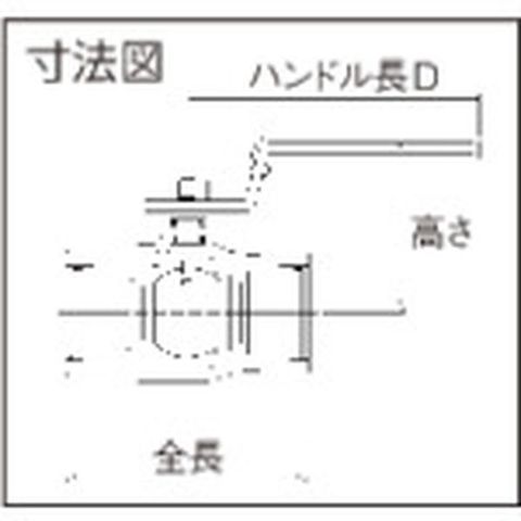 ・呼び径A:40・呼び径B:1 1/2・全長(mm):96・高さ(mm):63・ハンドル長D(mm):112・最高許容圧力(MPa):2.8(常温の水・油)、1.0(常温の空気)、0.7(120℃以下の冷温水・油・空気)