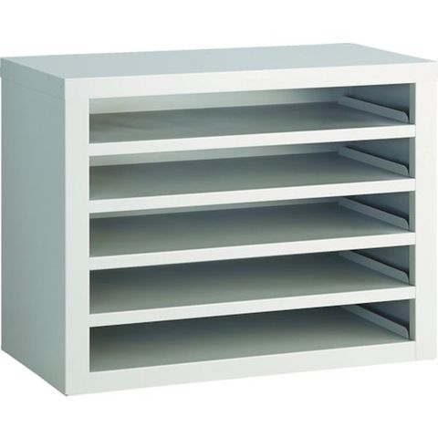 ・色:ネオグレー・奥行(mm):307・間口(mm):553・高さ(mm):444・最大積載量(kg/台):150・段数(段):5・引出し:5段タイプ・1段あたりの引出し数 小型:4個・1段あたりの引出し数 大型:2個