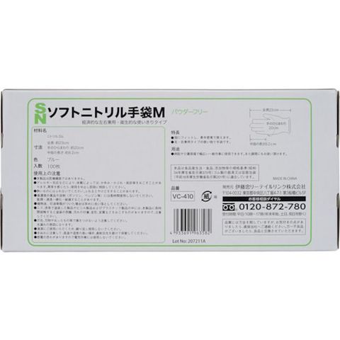 VC410M 伊藤忠リーテイルリンク(株) IRL ソフトニトリル手袋 M 100枚入