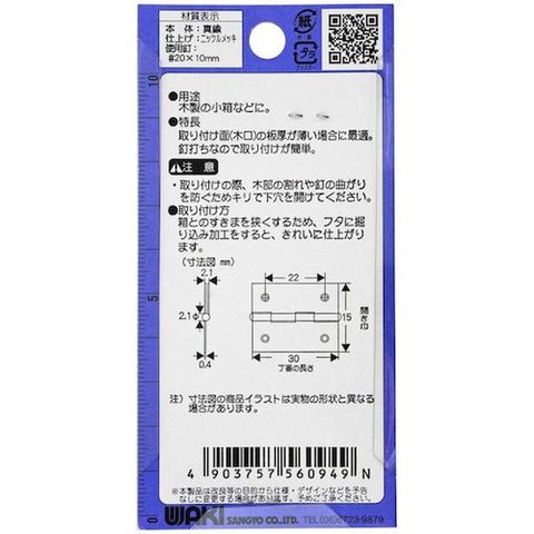 ・取付の際、木部の割れやビスの破損を防ぐためキリで下穴を開けて下さい。・箱とのすきまを狭くするため、フタに掘り込みの加工をすると、きれいに仕上がります。・寸法図の商品イラストは実物の形状と異なる場合があります。