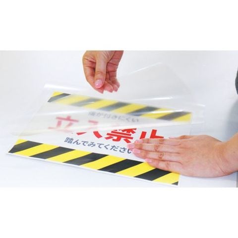 ・印刷物で簡単にフロアステッカーが作れます。・汚れに強く、油性マジックなどの頑固な汚れもふき取るだけで楽に落ちます。・抗菌加工済みで、擦れても粉塵が出にくいので、病院や食品工場などでも安心です。・不燃材認定合格の素材なので、熱や薬品に強く変形しにくいです。・薬品をこぼしても表面は変化せず、焦げ跡なども、簡単に拭き取れます。・表面に特殊なコーティング加工をしてあるので、擦ってもキズが付きにくく、光沢も長く維持できます。