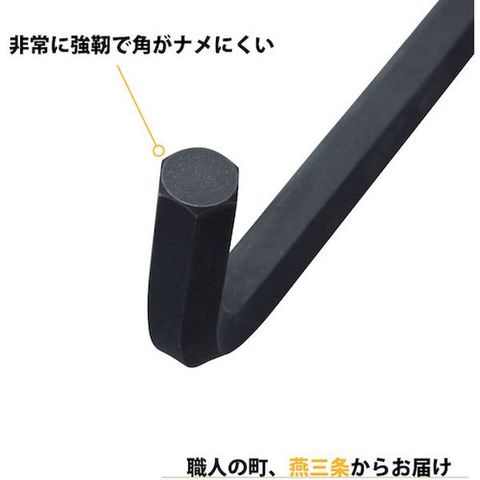 ・高品質な特殊クロームバナジウム鋼(SNCM20V)を使用しています。・硬さと耐摩耗性を持ち合わせる合金鋼です。・均質で最高精度の調質(独自の熱処理)硬度(HRC60°±1°)を確保するため、あえて連続炉を使わずに、密閉炉による完全無酸化・脱炭補正焼入方式を採用しています。・先端がボール状に加工されており、ネジ穴に素早くフィットします。・狭い場所や隠れたところのネジにも斜めから挿入することができ、ネジ山を壊しません。・連続回転で締め付けも、取り外しもでき、従来のレンチより作業時間が数倍短縮できます。・コンパクトなショートタイプです。・1.5mm・2.0mm・2.5mm