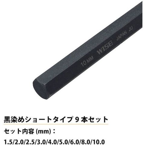 WLH130B9S フジ矢(株)(ワイズ) ワイズ 六角レンチ 黒染め9本セット(ショート)