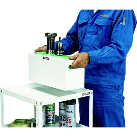 ・ワゴンの棚板や卓上に載せて使用できるツーリングBOXです。・ツーリング交換時の機械への脱着が容易で取手付のため移動も簡単です。