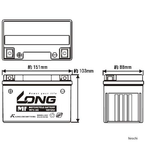 ロング LONG バッテリー 12V、8Ah 液注入済 互換 YTX9-BS