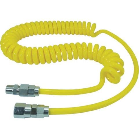 ・コイル径(mm):30・色:黄・ホース内径×外径(mm):5×8・使用範囲(m):4.75・全長(mm):1280・コイル長(mm):880・外径(mm):8・内径(mm):5・使用流体:空気・継手部:G1/4