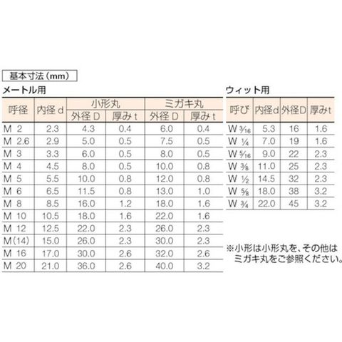 ・おねじの頭あるいはナットが母材に食い込まないための一般的な平ワッシャーです。