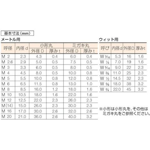 ・呼び径:M8・外径(mm):18・内径(mm):8.8・厚さ(mm):1.2