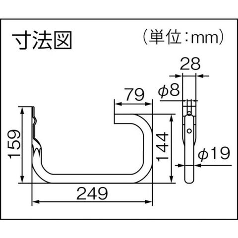 ・色:シルバー・吊下荷重(N/kgf):14.7/15・耐荷重(N/kgf):147/15・幅(mm):19・奥行(mm):249・高さ(mm):159・表面仕上:亜鉛メッキ
