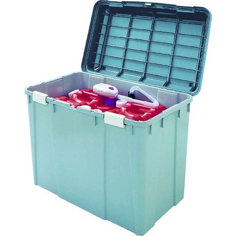 ・容量(L):105・色:グリーン/グレー・外形寸法(mm)間口:780・外形寸法(mm)奥行:460・外形寸法(mm)高さ:490・有効内寸(mm)間口:695・有効内寸(mm)奥行:375・有効内寸(mm)高さ:440・収納目安:ポリタンク20L 3個、18L 4個・南京錠(別売):取付可(φ5mm)