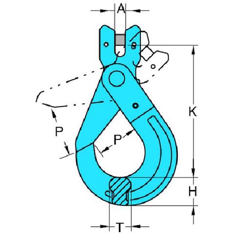 ・基本使用荷重(t):3.2・適合チェーン線径(mm):10・タイプ:ピンタイプ・寸法(mm)A:11・寸法(mm)H:30・寸法(mm)K:142・寸法(mm)P:44・寸法(mm)T:26・チェーン線径(mm):10