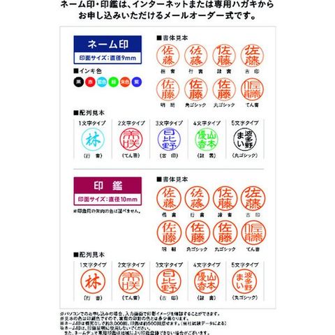 ・印面寸法(mm):9(ネーム印)/10(印鑑)