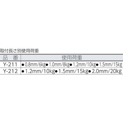 ・参考使用荷重・0.8mm/6kg・1.0mm/8kg・1.2mm/10kg・1.5mm/15kg