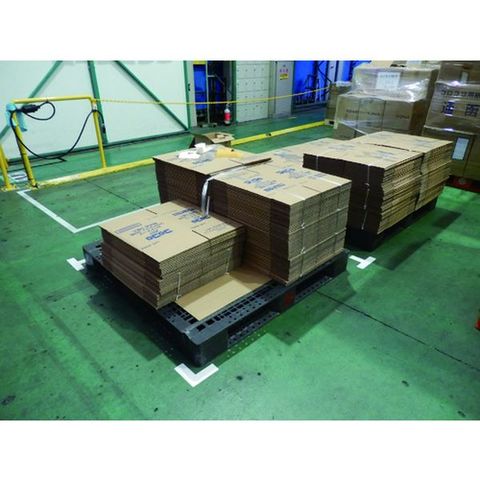 ・丈夫なフィルムと強力な粘着剤で破れや剥がれが少なく、取り換えの際には剥がしやすいテープです。・フォークリフトやパレットの擦れによる破れやはがれをコーナー表示で解決します。