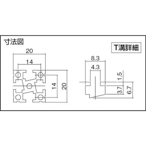 ・幅(mm):20・高さ(mm):20・長さ(mm):300・ボルトサイズ(mm):4・タイプ:M4