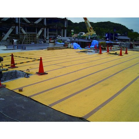 ・自重があるので風でめくり上がりにくく、しっかりとなじみます。・加重に耐える頑強性と衝撃に耐える緩衝性・柔軟性を兼ね備えています。・防水性が高く、住宅廻り、玄関、ベランダ建築現場、選挙・災害時の体育館の床などにも利用できます。