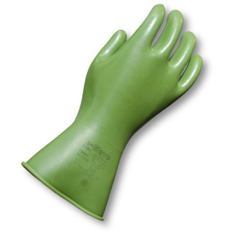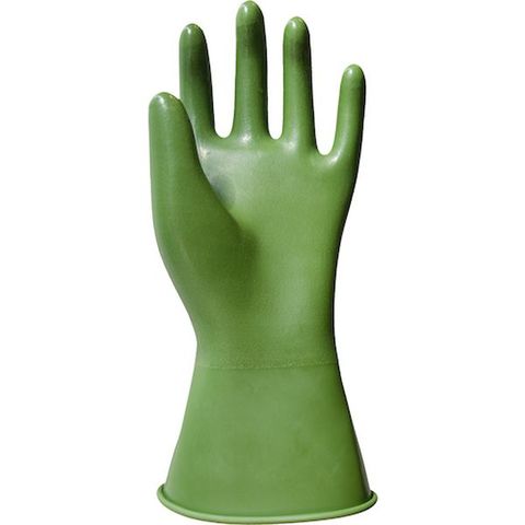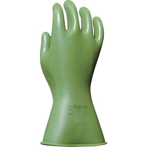 ・色:緑・サイズ:フリー・全長(cm):28・手のひら周り(cm):23.0(±5mm)・中指長さ(cm):8・厚さ(mm):約0.6・使用電圧(V):交流300V、直流750V以下・試験電圧(1分間):3000V・幅(mm):100
