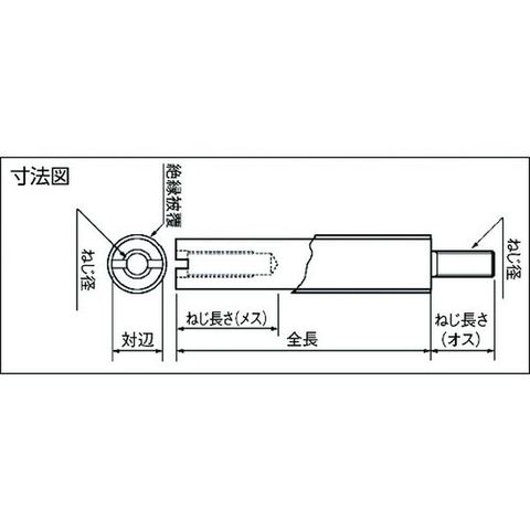 ・全長(mm):40・対辺(mm):8・ねじ径:M4・ねじ長さ(mm):オス10、メス12