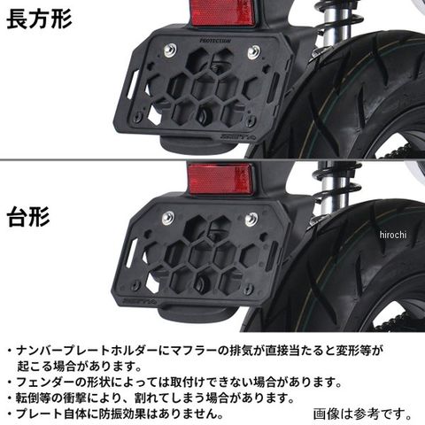 ・ナンバープレートホルダーにマフラーの排気が直接当たると変形等が起こる場合があります。