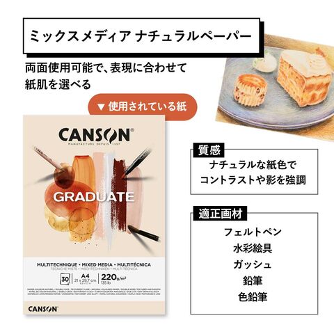 Canson Graduateブックは入門者や愛好家の自己表現をサポートするハードカバーのスケッチブックシリーズです。