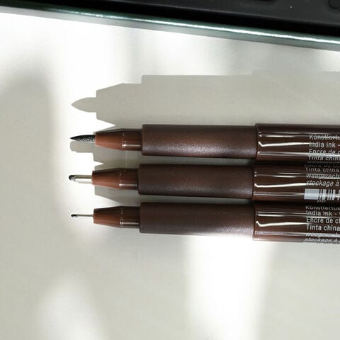 柔らくなめらかな水溶性芯は良質な顔料をたっぷり含み耐光性に優れています。またピットアーティストペンは一度紙に定着すると滲まず裏移りがありません。