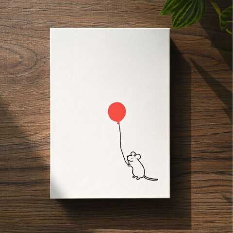 「しあわせハッピーな風船を渡すねずみ」です。