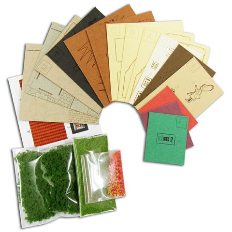 ■セット内容:レーザーシートA~N(14枚)、ベース(1枚)、屋根シート(1枚)、スポンジ、パウダー、色砂、組立て説明書