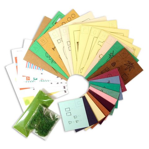 ■セット内容:レーザーシートA~U(21枚)、ベース(1枚)、印刷シート(4枚)、スポンジ、パウダー、組立て説明書