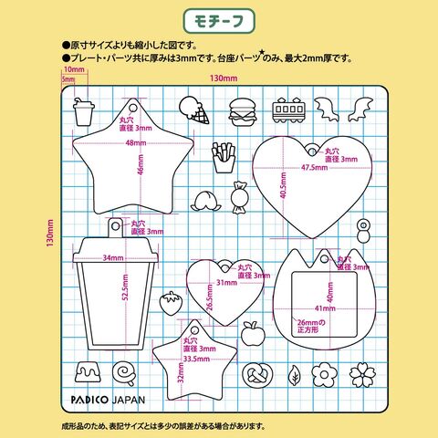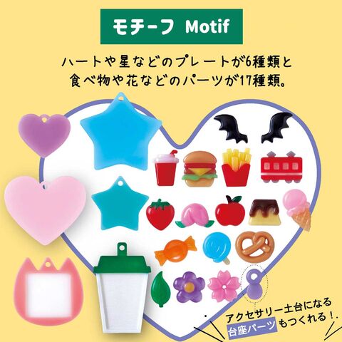 ・ハートや星などのプレート6種類と食べ物や花などのパーツ17種類