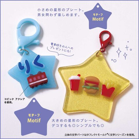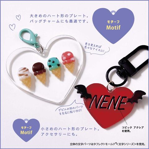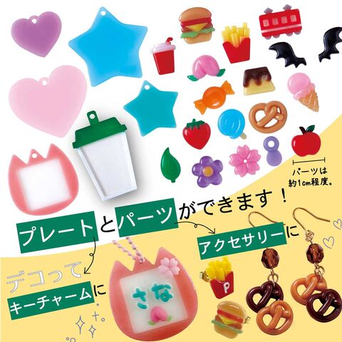 ハートや星などのプレート6種類と食べ物や花などのパーツ17種類が揃っています。