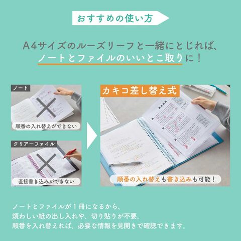 「クリアーファイル カキコ 差し替え式」以外のA4 タテ型バインダーでも使用可能です。