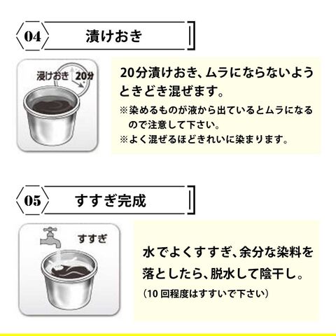 ※濃色(黒、紺、茶)は染料を2倍にして下さい