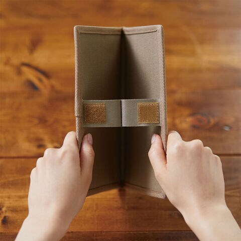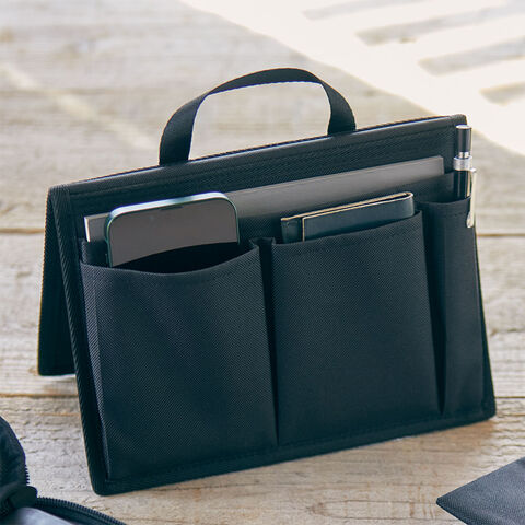 カバンから出してデスクにかけるだけのオーガナイザー。カバンの中でも自立しやすい芯材入りのハード仕様。