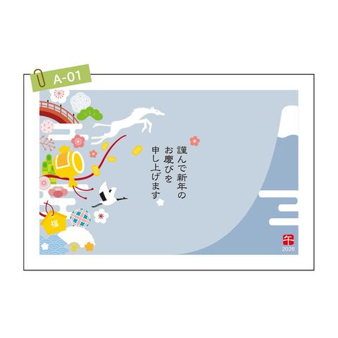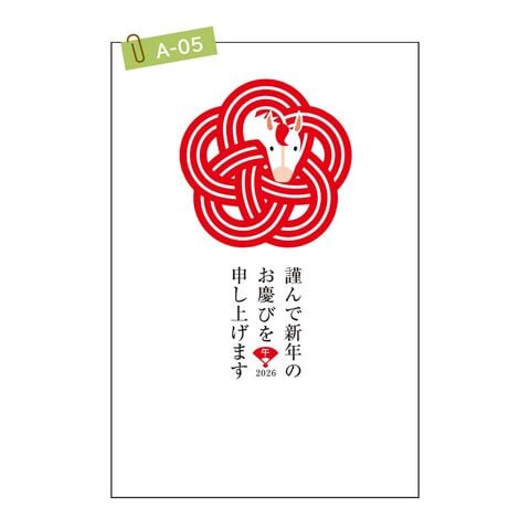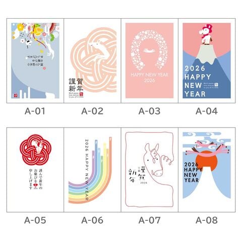 【ネコポス可】 2026年 (令和8年) 午年 デザイン パック年賀状 5枚入り 【A-01】 年賀状 年賀はがき 印刷済み 郵便局 お年玉付き年賀はがき イラスト 無地