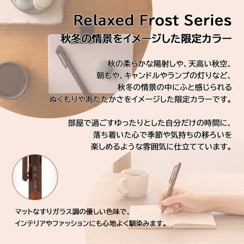 秋の柔らかな陽射しや、天高い秋空、朝もや、キャンドルやランプの灯りなど、秋冬の情景の中にふと感じられるぬくもりやあたたかさをイメージした限定カラーです。